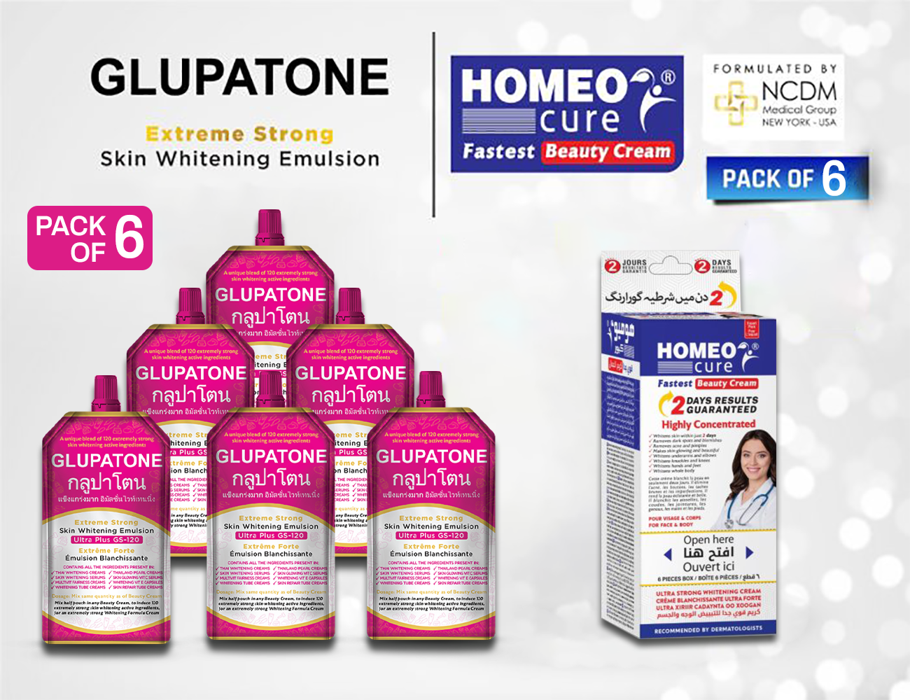 Exclusive Bundle Offer – Glupatone Extreme Strong Whitening Emulsion 50ml (Pack of 6) + Homeo Cure Beauty Cream (Pack of 6)