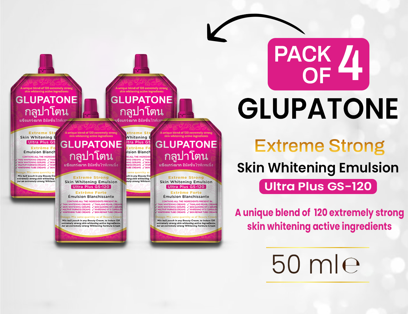 GLUPATONE Extreme Strong Whitening Emulsion (50ml × Pack of 4)